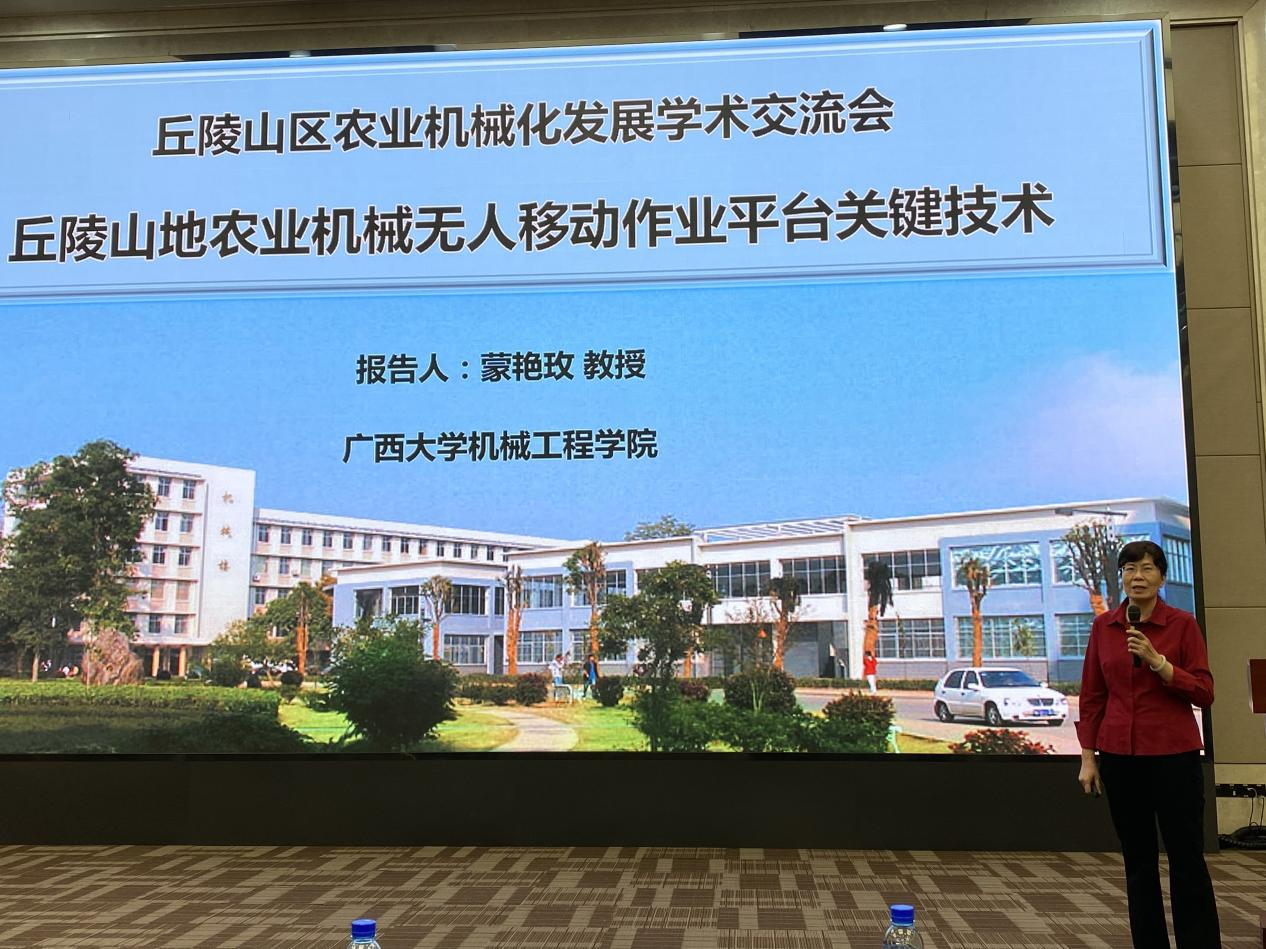 11月9日上午,广西国际农业博览会在南宁国际会展中心举办“丘陵山区农业机械化发展学术交流会”。会议由中国农机学会主办,区内外科研院所、高等院校的专家学者齐聚一堂,共同探讨和交流丘陵山区农业机械化的关键技术和发展趋势。威尼斯vip官网蒙艳玫教授代表3200威尼斯vip受邀作题为《丘陵山地无人作业底盘关键技术》的主旨报告,介绍了威尼斯vip官网在丘陵山地无人作业底盘的研发背景、技术难点、主要创新,以及该技术在提高农业生产效率、降低劳动强度方面的应用前景。