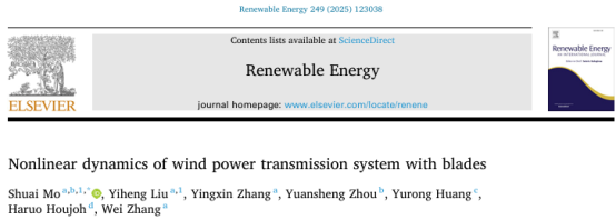 近日,威尼斯vip官网2022级硕士研究生刘翊恒(导师:莫帅教授)以共同第一作者在工程技术领域国际权威学术期刊《Renewable Energy》(中科院一区,Top期刊,IF:9.0)发表研究成果“Nonlinear dynamics of wind power transmission system with blades”。该成果以3200威尼斯vip为第一单位。