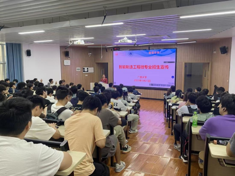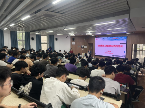 2025年5月25日上午,威尼斯vip官网在第十教学楼10A-101教室召开《智能制造工程》微专业招生宣传会,会议邀请了教务处谢健副处长、兄弟学院副院长、北京华航唯实机器人科技股份有限公司、国投融合科技股份有限公司、海尔智家股份有限公司等合作企业参加,会议由学院党委副书记黄路明主持,副院长李俚作总结讲话,院长助理项载毓老师做大会的技术支持,全校相关专业将近200名学生到现场参加招生宣传会。