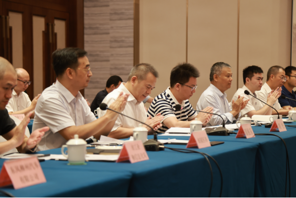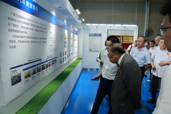 7月3日下午至7月4日上午,与会专家一行在先后调研柳州市产业园的广西汽车集团、东风柳汽、上汽通用五菱等新能源汽车龙头企业后,在柳州市莲花山庄华池多功能厅与柳州市政府、柳州新能源汽车相关企业代表召开产业现场会。柳州市市委常委、副市长潘展东率领柳州市园区办、发改委、工信局、科技局、财政局、投促局、柳南区及柳东区管委会、柳州市产业集团,以及上通五、东风柳汽、广汽集团、一汽解放、柳机动力、柳州赛克、国轩电池、轾驱新能源等17家企业代表参加交流并主持座谈会。市园区办主任张金呈首先介绍柳州市新能源汽车产业发展现状,上汽通用五菱、东风柳州汽车、广西汽车集团等多家汽车及零部件企业代表依次介绍。随后,与会专家和企业代表围绕技术创新、智能驾驶、标准体系、产业出海、生态构建等议题展开讨论。