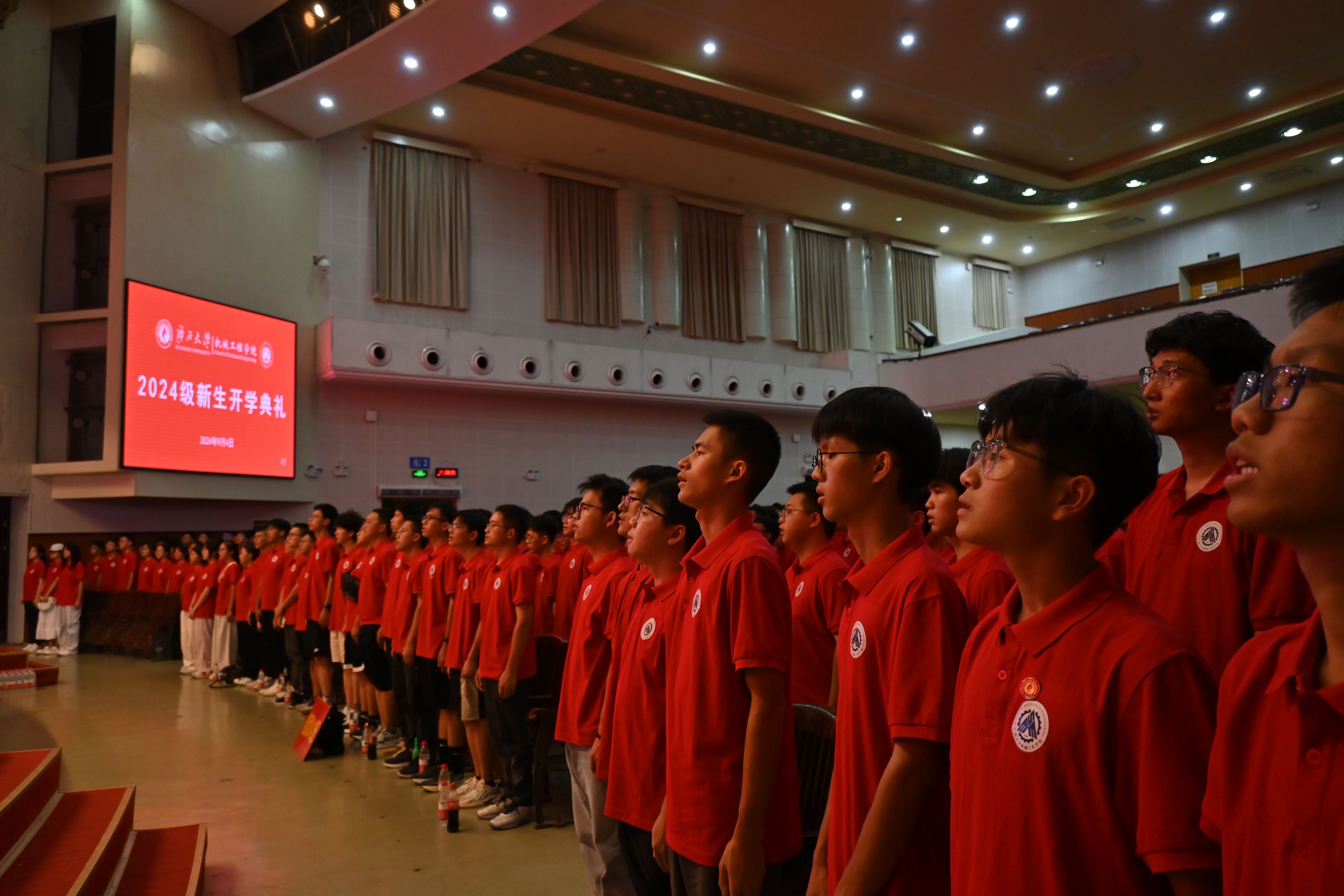 2024年9月4日晚,威尼斯vip官网2024级新生开学典礼在学校大礼堂隆重举行。学院领导、各系教师代表、辅导员及新生班主任与身着红色院服的2024级全体新生们齐聚一堂,共同参与本次开学典礼。典礼由学院党委副书记、纪委书记黄路明主持。